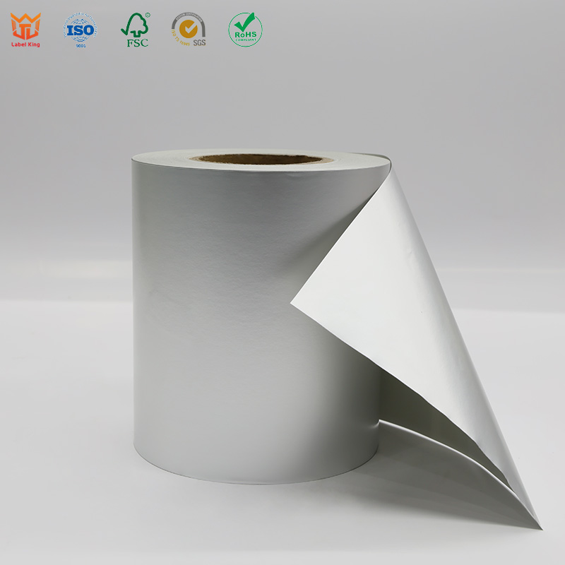 80g matte silver PET paper/acrylic glue/60g glassine bottom self-adhesive label: PET film with matte silver coating, combining the strength of plastic with a metallic feel. Compared to paper substrates, weather resistance is improved by 300%. Adaptable to precision processing such as laser die-cutting, recyclable, and carbon footprint reduced by 40%.
