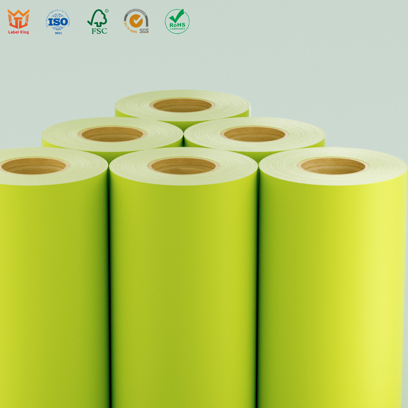 Fluorescent yellow paper / hot-melt adhesive / 60g glassine backing self-adhesive labels have high visibility: fluorescent yellow (or fluorescent green) is bright and can be clearly identified in low light or complex backgrounds, suitable for warning and reminder purposes. Compatible with flexographic, letterpress, and digital printing, but it should be noted that some fluorescent colors may affect the color rendering of colored patterns. The material weight is generally 70-80g/㎡, offering stiffness and stickiness. Hot-melt adhesive has strong initial tack and allows for quick bonding, suitable for various substrates such as cardboard, plastic, and metal. However, it may ooze at high temperatures and become brittle and fall off at low temperatures (not suitable for freezing or high-temperature environments). The 60g white glassine backing paper facilitates die-cutting and automated labeling, reduces the risk of breakage, matches well with hot melt adhesive, peels smoothly without leaving residue, is suitable for sensor positioning, and enhances labeling accuracy.